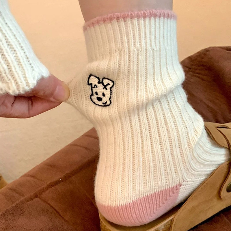 Porlsdn | Women’s Wool Blend Puppy Pattern Mid-Calf Socks for Winter