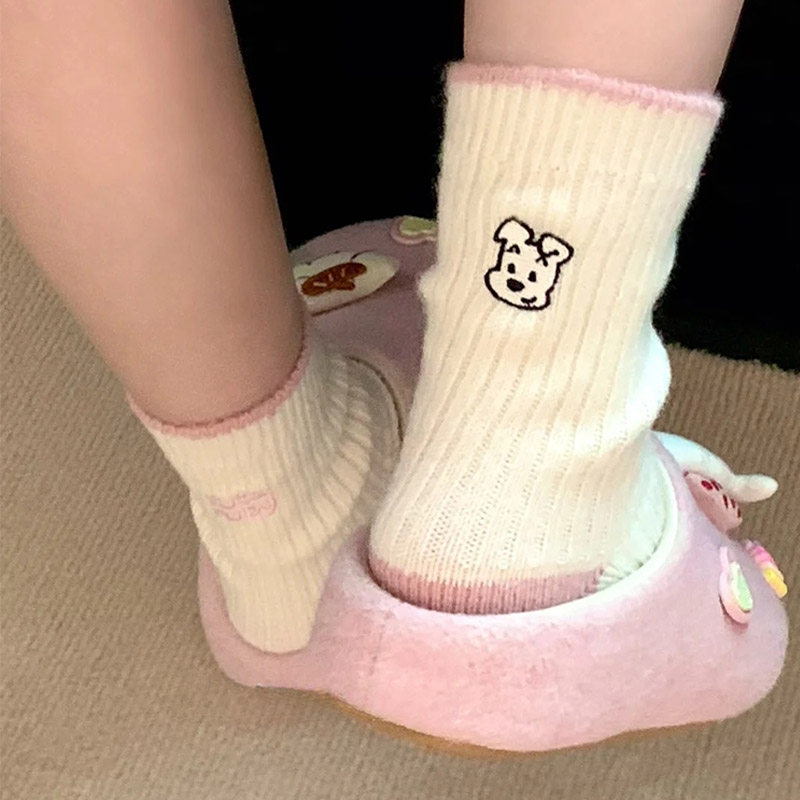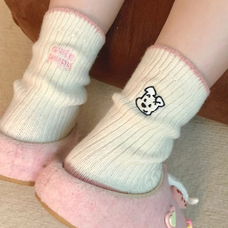 The socks feature a subtle puppy-themed pattern that adds a light and charming visual element while keeping the overall look balanced and wearable.