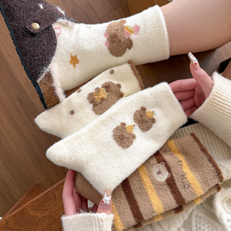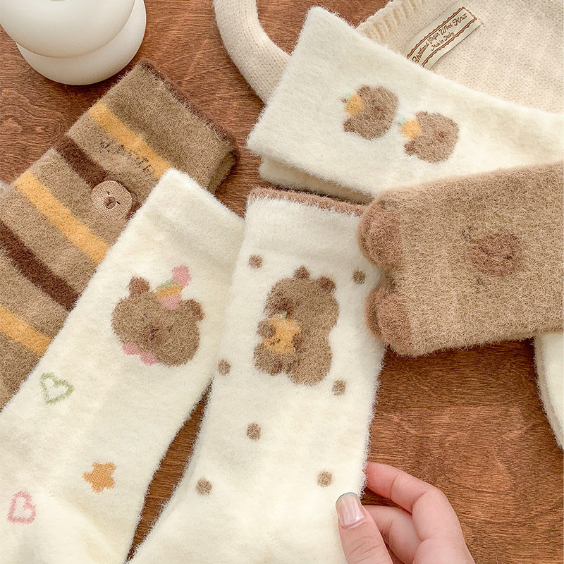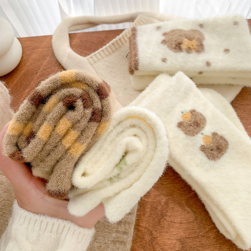 One size fits all [soft and waxy australian velvet for warmth and care] / Stripes + hearts + three-dimensional bear + polka dots "4 pairs"